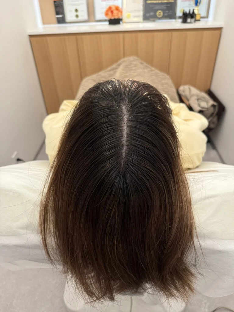 実際の施術後の写真を見ていただくとわかるように、人工的な印象を受けることなく、自然な髪の密度感が得られているのがよくわかります。